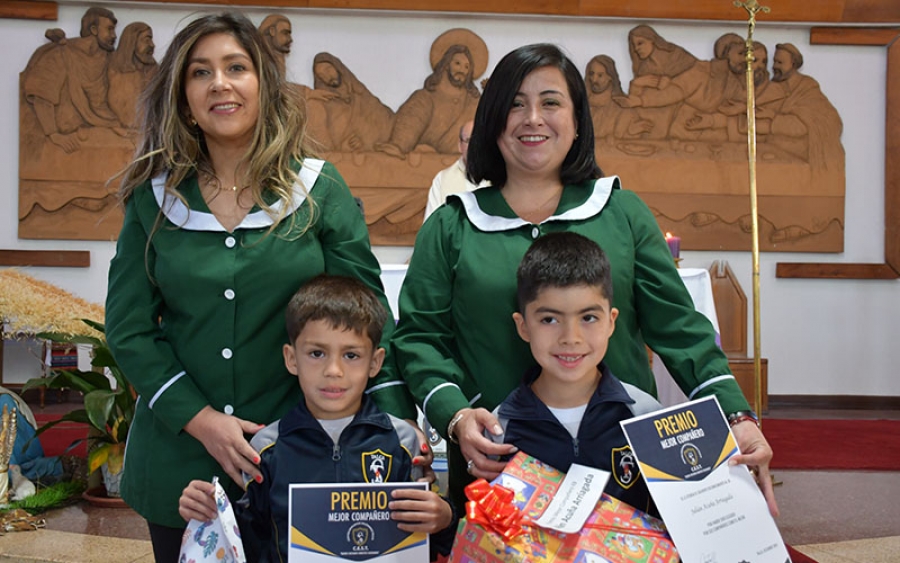 En un momento especial de la ceremonia, se reconoció a los estudiantes más destacados. Los premios fueron entregados en distintas categorías: el mejor desempeño académico fue para Facundo Gangas Dinamarca (KA) y Diego Muñoz Ramos (KB); el premio al mejor compañero fue para Baltazar Albornoz Gómez (KA) y Julián Acuña Arriagada (KB); el reconocimiento al espíritu salesiano lo recibieron Cristóbal Gaete Maldonado (KA) y Andrés Solar Retamal (KB) por su activa participación en la pastoral. Además, Cristóbal Gaete Maldonado fue destacado por sus habilidades y destrezas en ACLE.